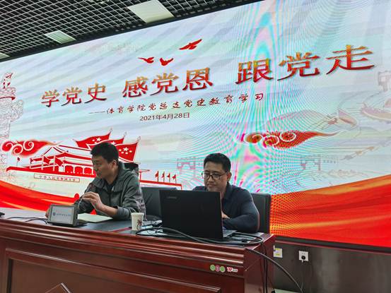 2021年4月28日下午,体育学院举办党史学习教育系列活动。邀请学院党史教育宣讲团成员--马克思主义学院综合办主任梁鹏为全体教职工和学生积极分子进行了一场生动全面的党史教育讲座。会议由体育学院党总支书记高栋主持。