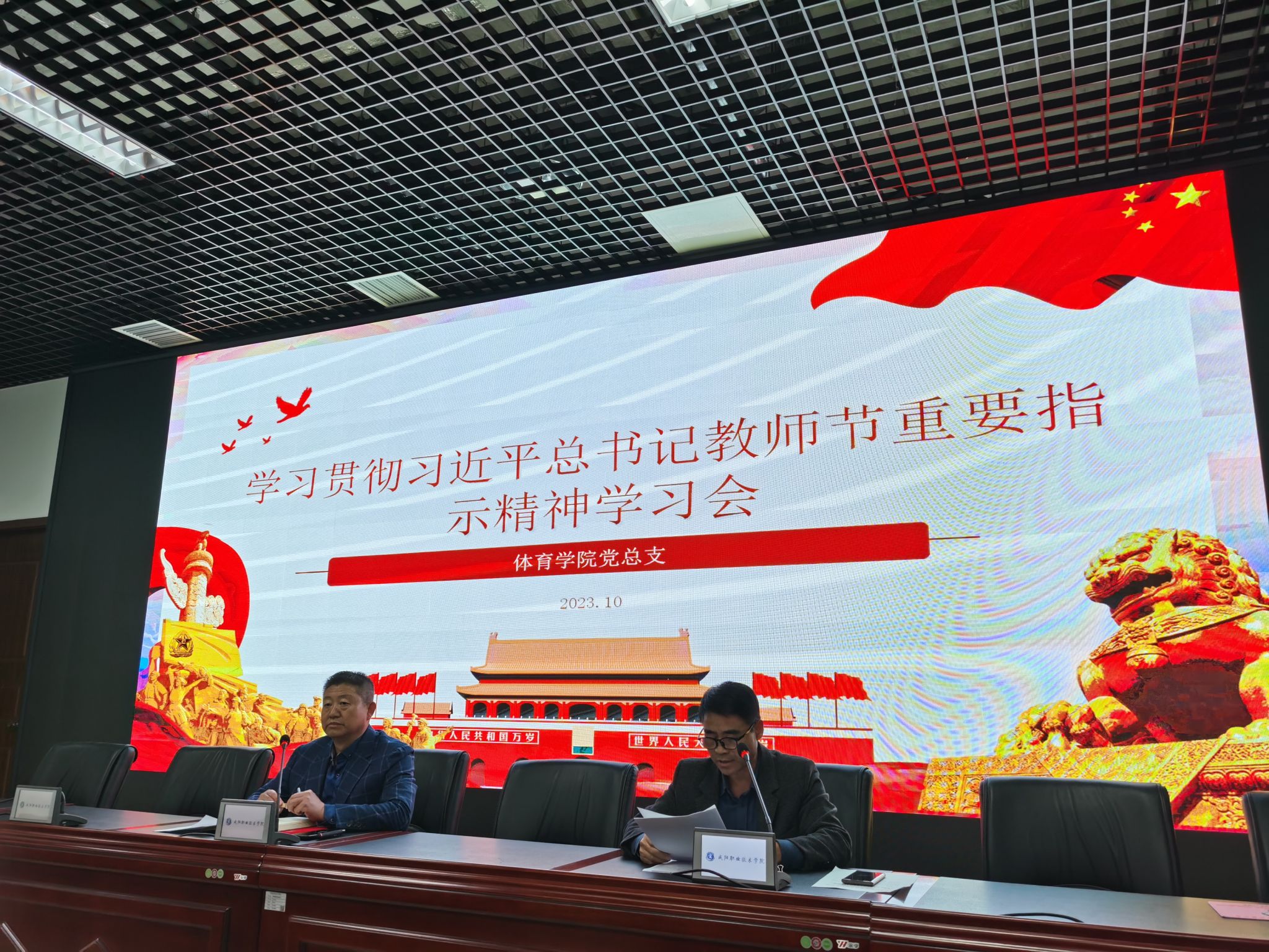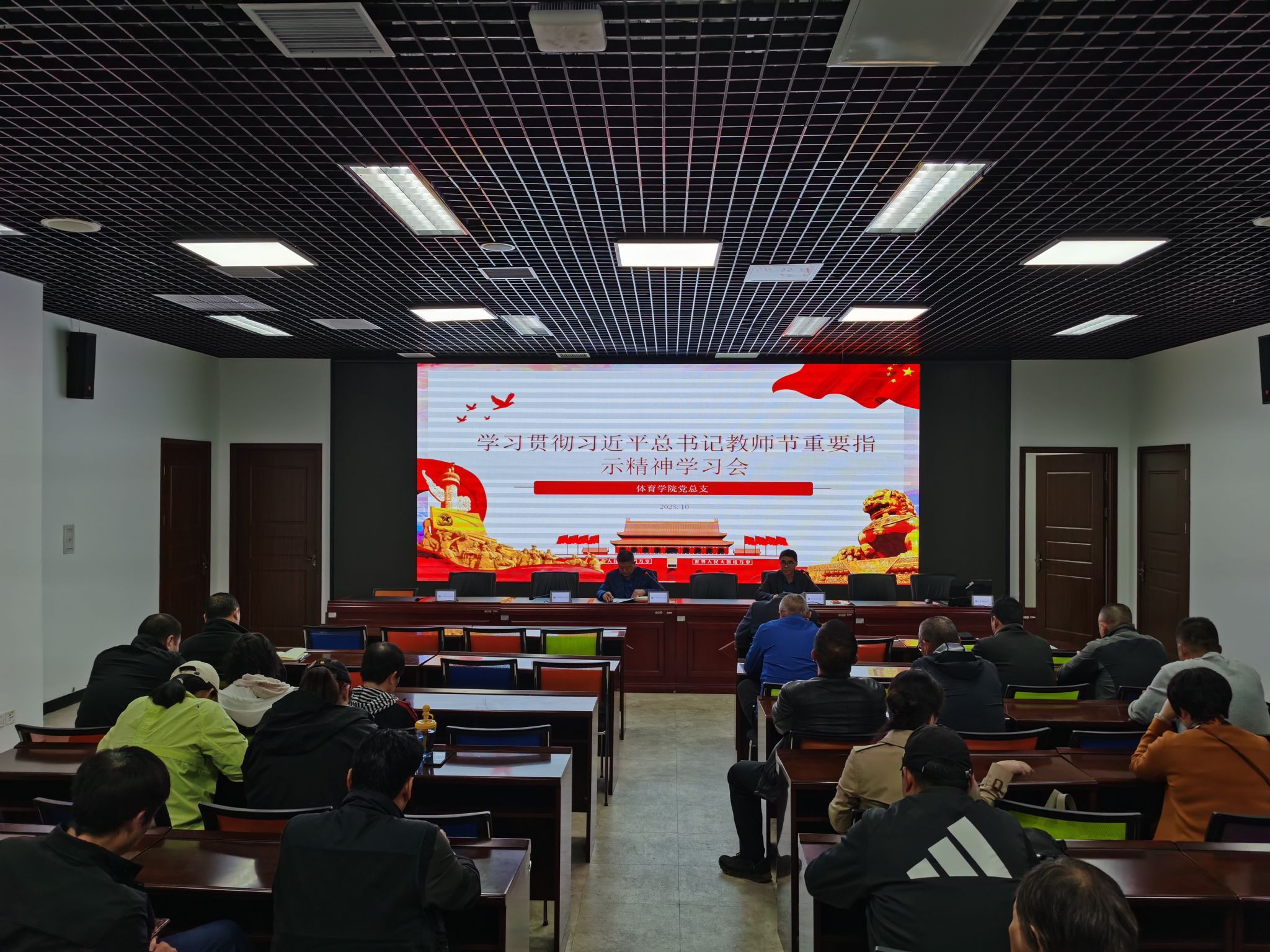 10月25日下午,体育学院召开学习贯彻习近平总书记教师节重要指示精神专题学习会,党总支书记梅选智主持会议,全体教职员工参加会议。