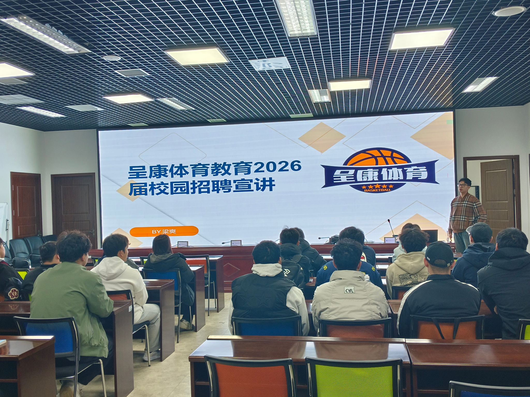 座谈会后,梁爽经理面向体育学院学生开展专场宣讲。他通过PPT直观展示了公司2025年招聘计划、薪酬福利体系、工作环境及职业晋升通道,同时鼓励同学们立足专业深耕技能,邀请优秀毕业生加入企业,在体育产业发展中实现个人价值与职业理想。