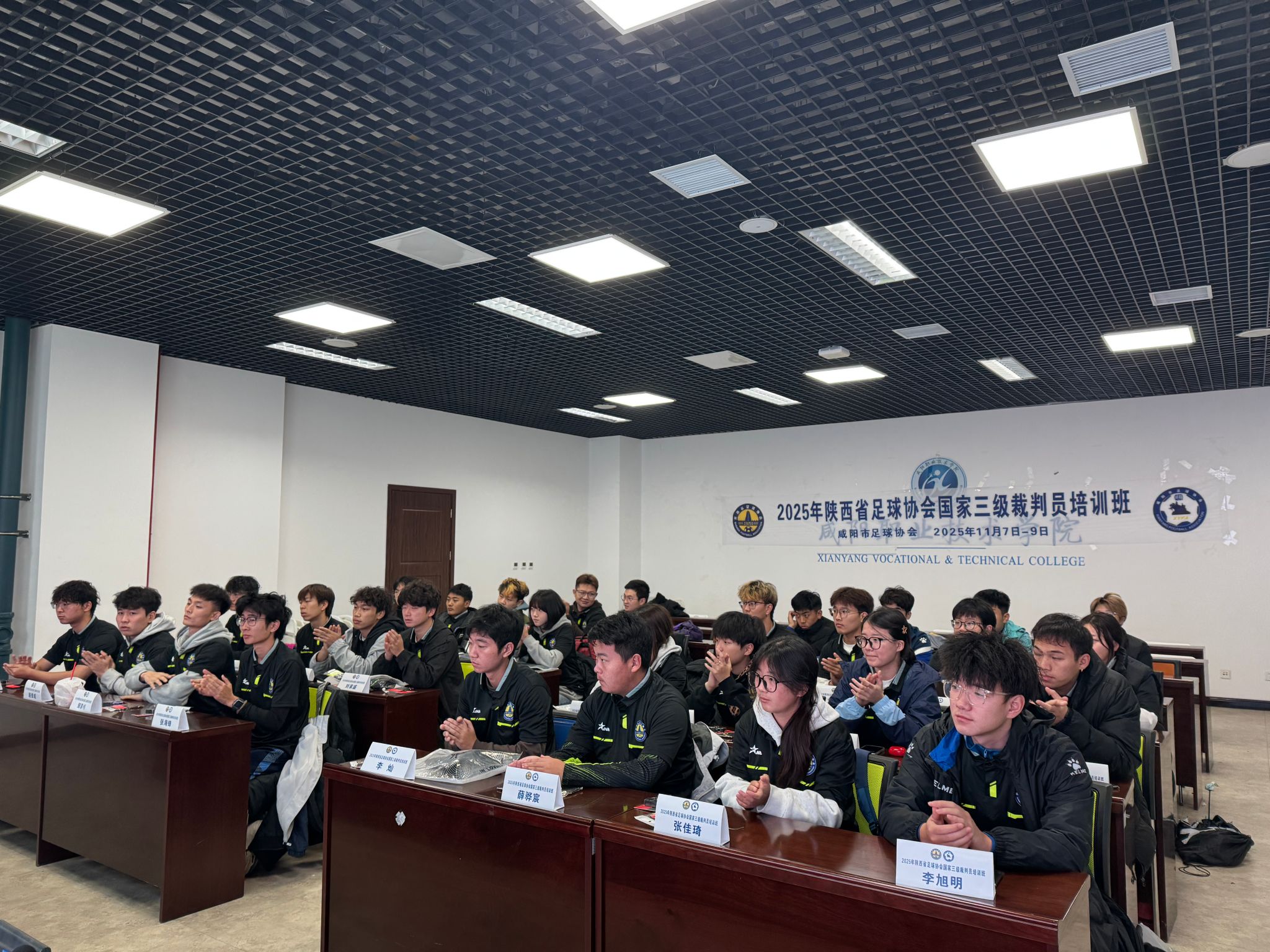 11月7日至9日,2025年陕西省足球协会国家三级足球裁判员培训班在咸阳职业技术学院圆满举办。咸阳职院体育学院院长高栋、体育学院教学办主任王晖出席开班仪式,30余名社会体育专业学生参与培训,开启专业裁判成长之路。