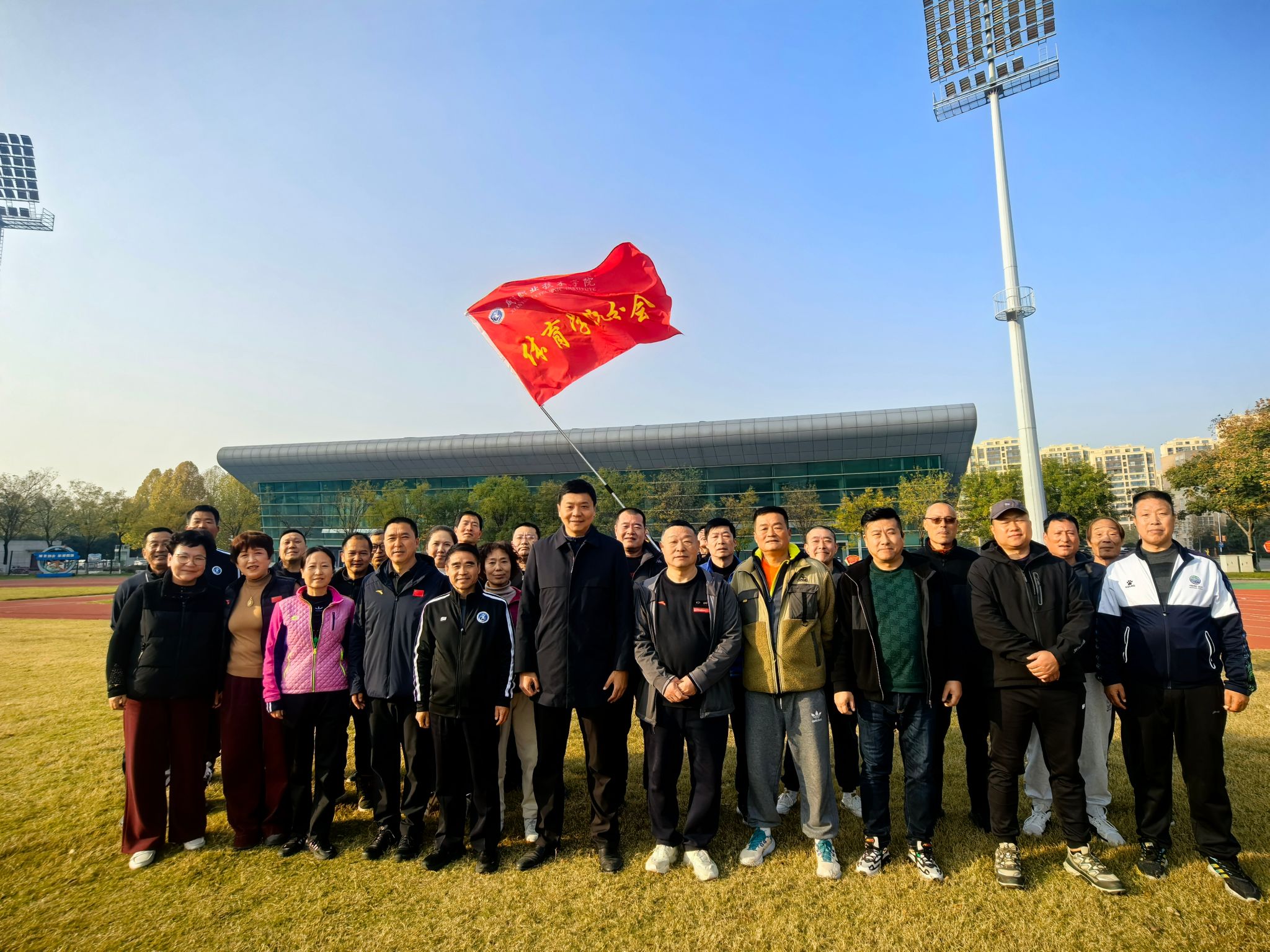 活动现场,学院工会授发的“体育学院分会”红旗醒目飘扬,教职工沿赛道整齐行进,秋日金黄树影与轻快步伐相映,尽显团队活力。活动尾声,全体人员在草坪合影留念,以轻松方式凝聚合力,为学院创建工作注入动力。