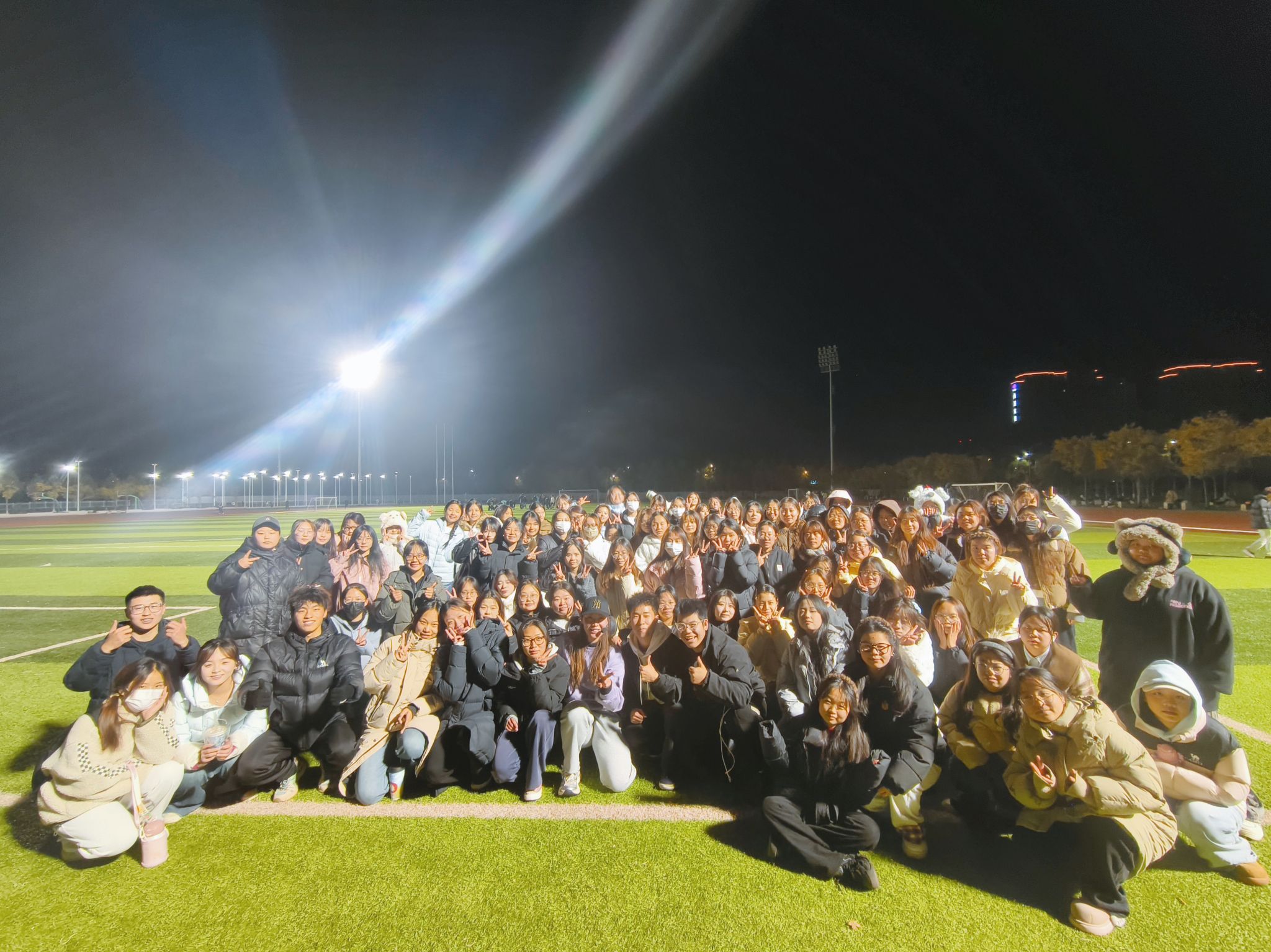 随着训练结束,收尾合影环节将氛围推向高潮。大家纷纷比出加油手势,笑容在灯光下格外灿烂,用镜头定格下这场热闹的训练瞬间。夜色里,明亮的灯光、鲜活的笑脸与茵茵草地交织,尽显校园青春活力。