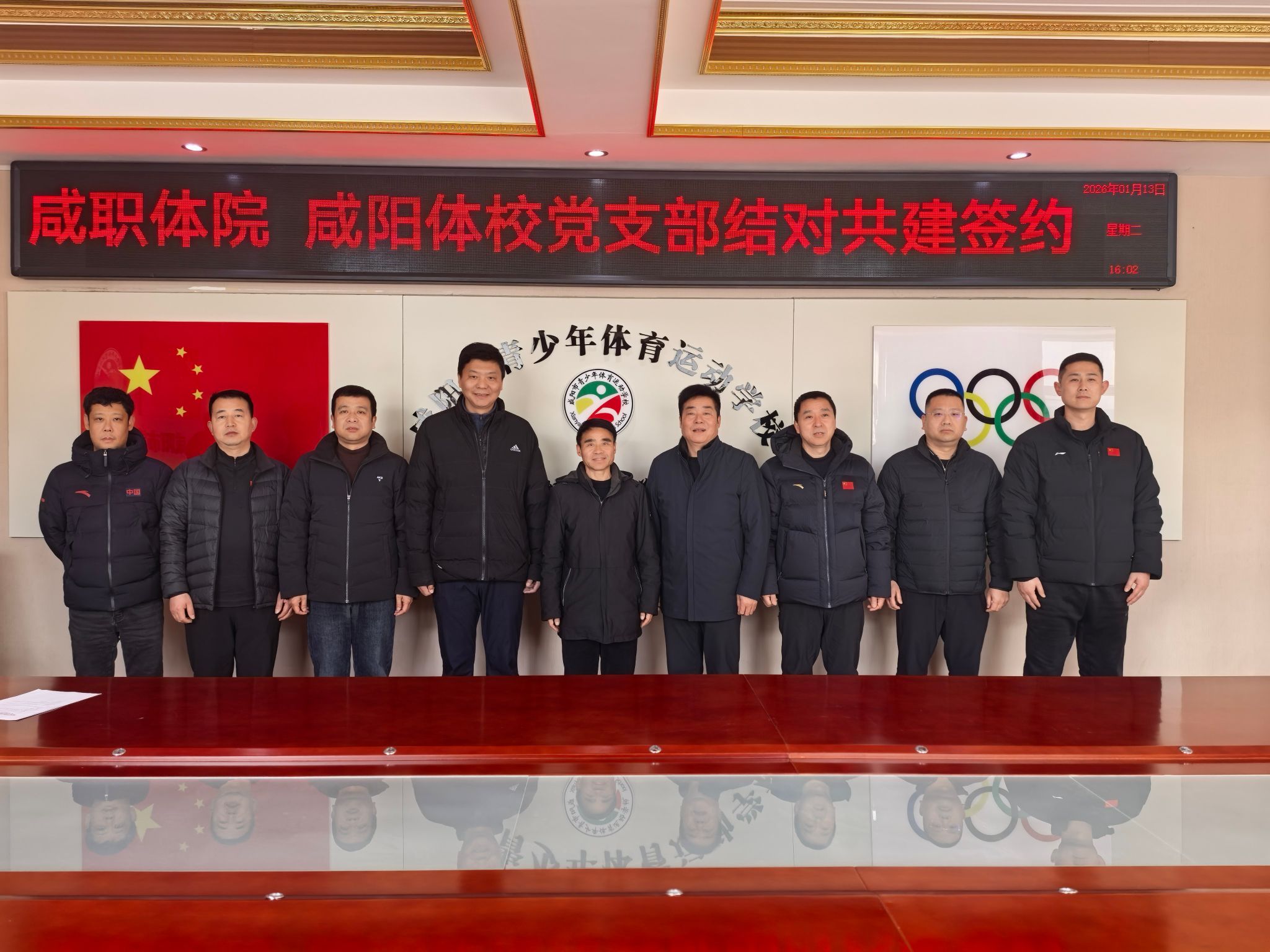 1月13日,咸阳职院体育学院党总支与咸阳市青少年体校党支部举行党建育人基地签约仪式,正式开启院校协同、党建赋能体育育人的合作新篇章。咸阳职院体育学院党总支书记梅选智、院长高栋,咸阳市青少年体校党支部书记兼校长许峰等双方领导及相关部门负责人参加仪式,仪式由咸阳市青少年体校党支部副书记冯宇辉主持。