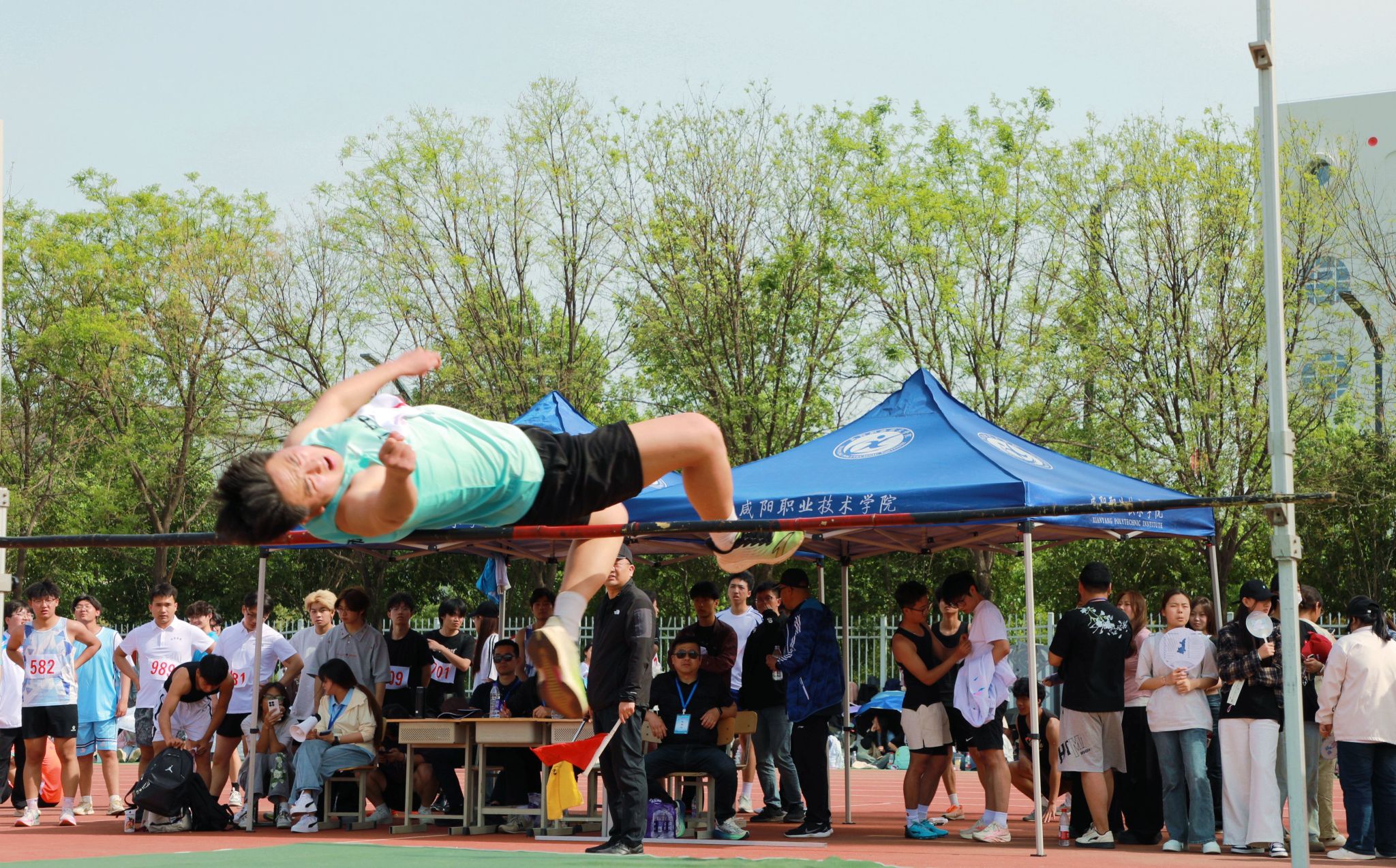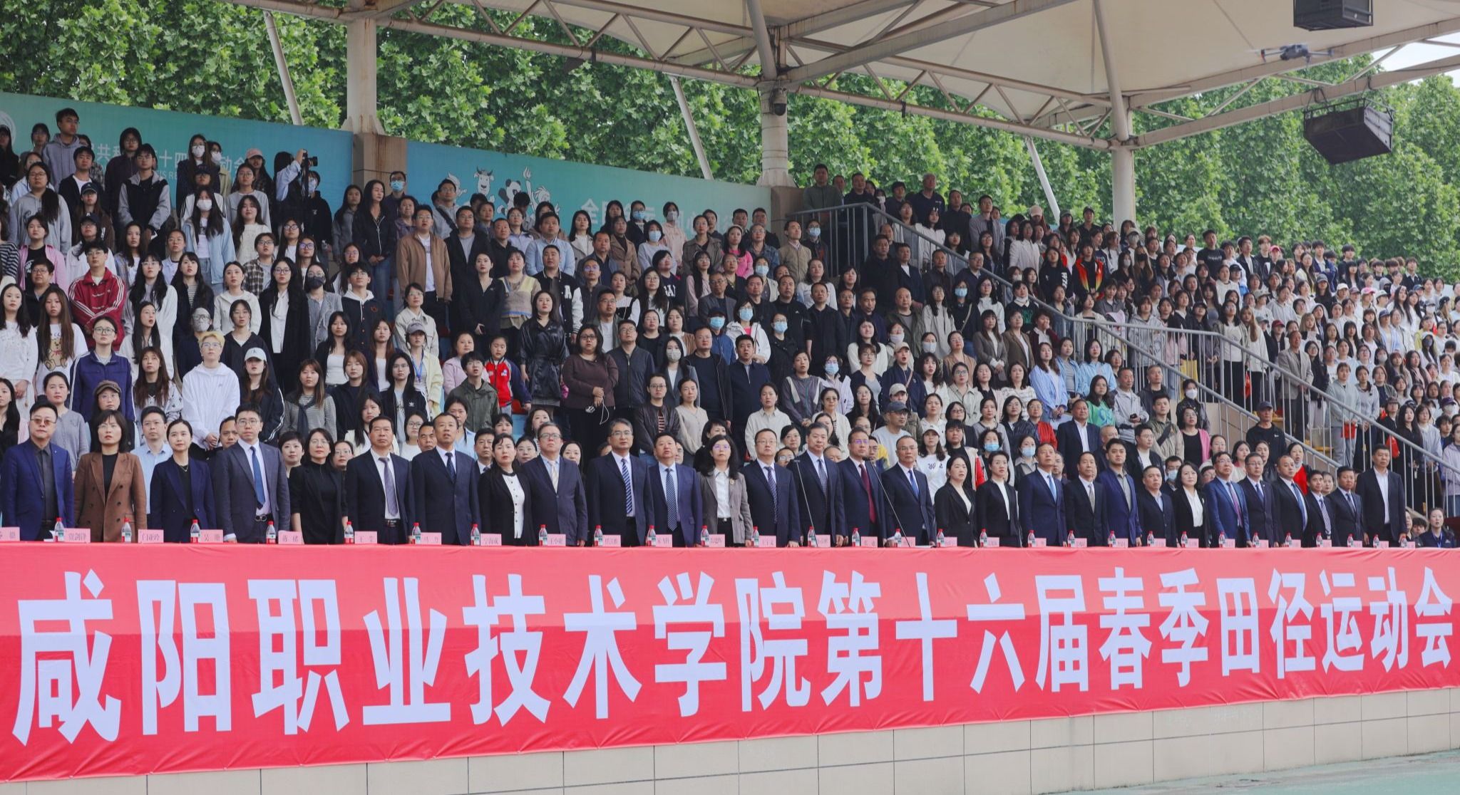张迪郑重宣布:“咸阳职业技术学院第十六届田径运动会开幕!”全场掌声雷动,气氛达到高潮。